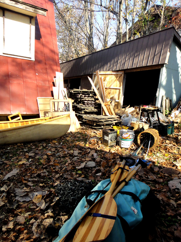 紅葉の下、今日は夏にできなかった倉庫の片づけ。