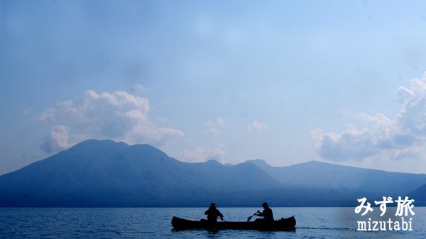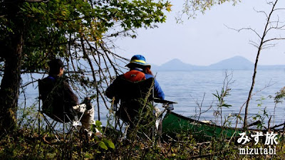 湖畔に湧く丸秘温泉もいい感じの温かさ。手を入れて一休み。