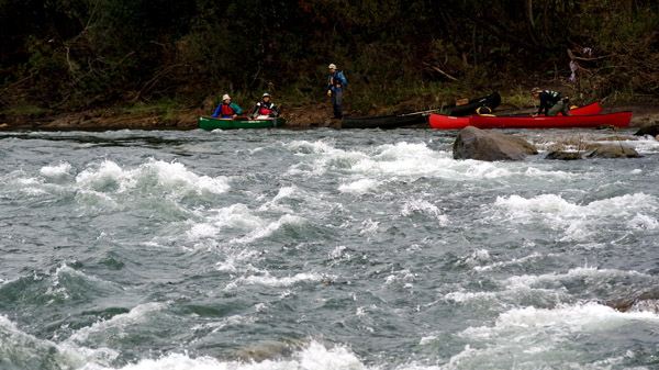 夏のラフティングコースとなるこの区間は季節によっては出艇すらできないほどの賑やかさ。