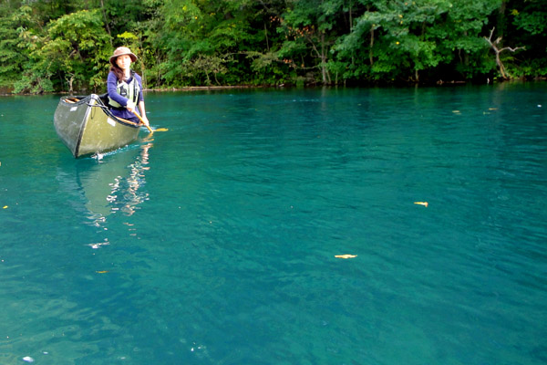 徐々に色づき始めた支笏湖の森。