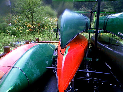 台風対策としてトレーラー最上段のカヌーを降ろし固定してきました。