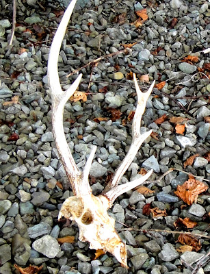 途中の湖畔でシカの角突き頭蓋骨を見つけたり