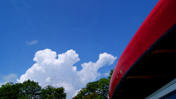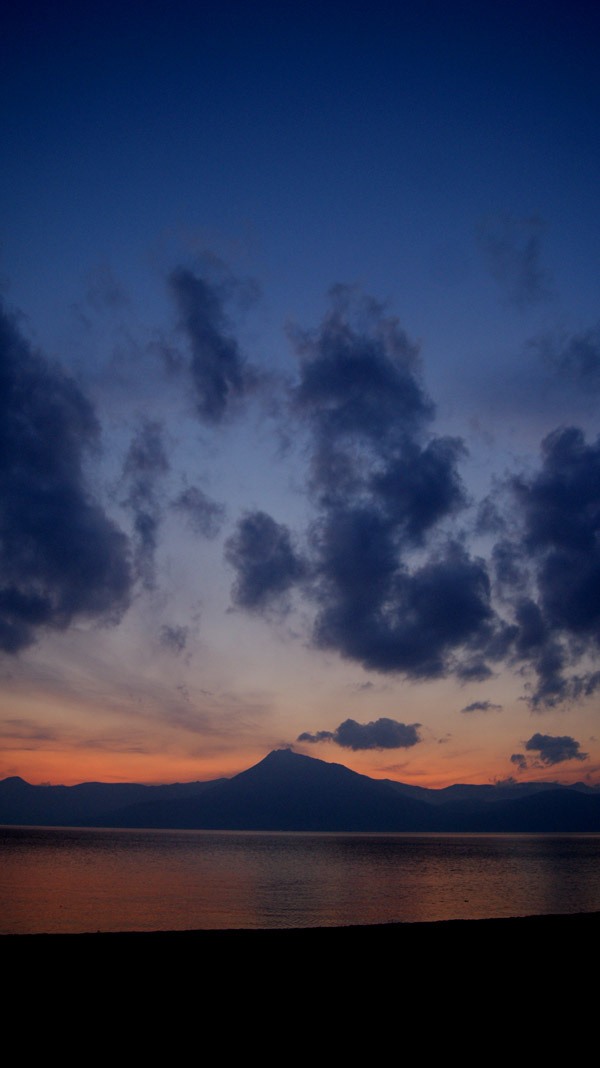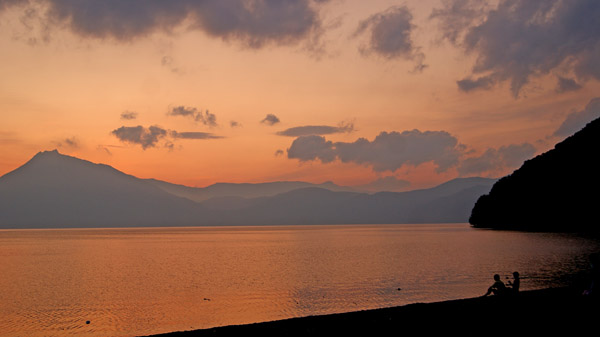 お昼頃、クッキリした油絵のような雲が広がる支笏湖。