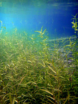 千歳川には水深が浅いせいか青々とした水草が。