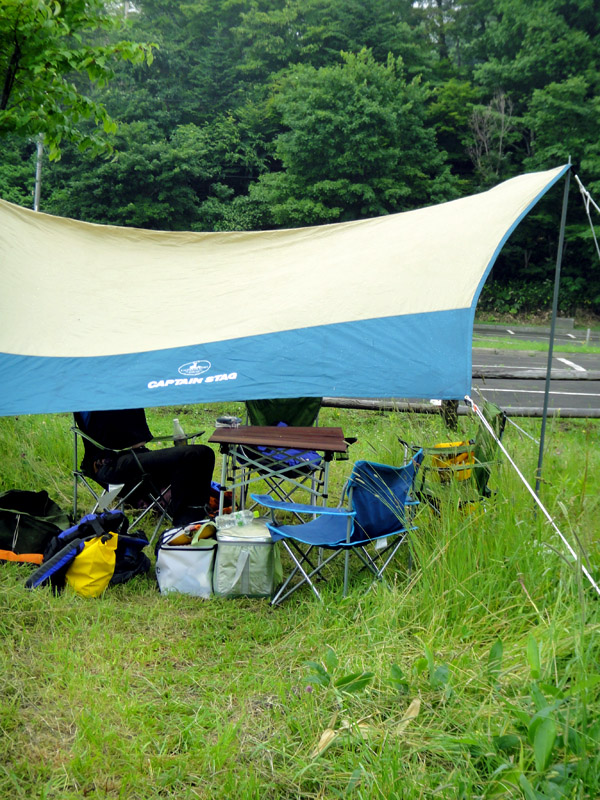 タープで雨をしのぎ昼休憩。