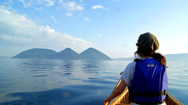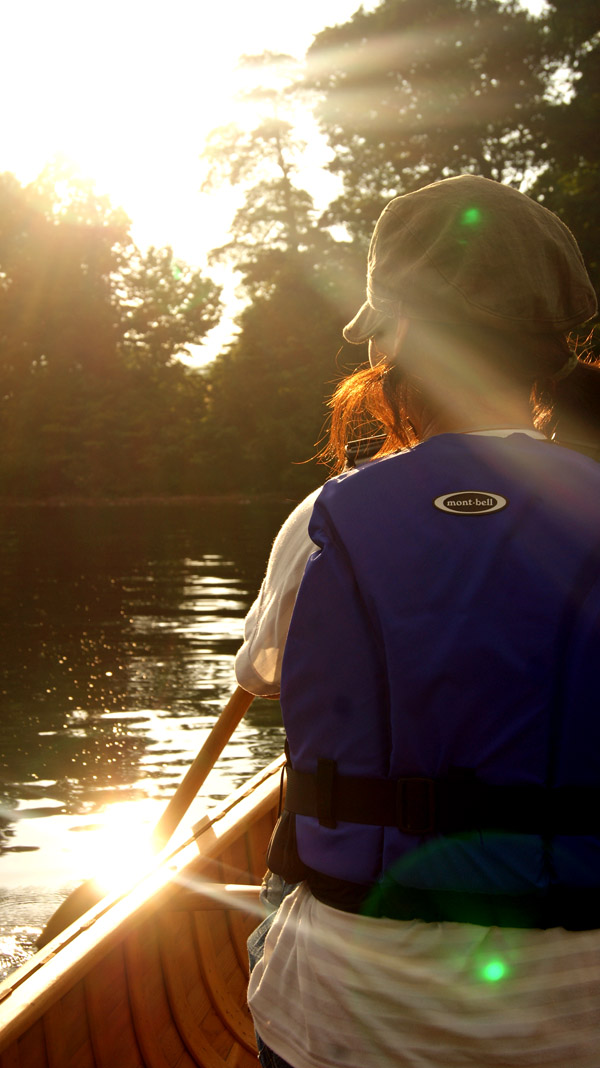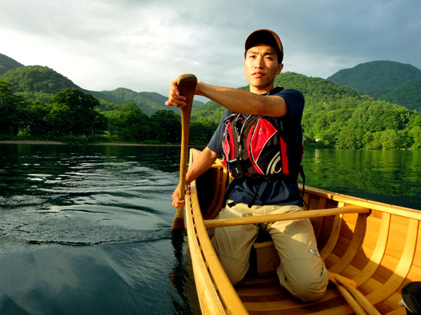 北側で「アシル(ウッド&キャンバスカヌー)」を浮かべる。