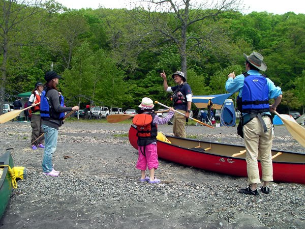 16:00を過ぎてキャンプ場に来られていたうちのお客様に「ミニカヌー講習会」開催。