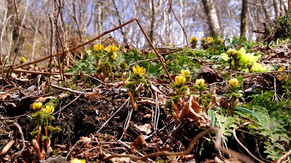 湖周辺にはまだあまり見られないフクジュソウがこんなにたくさん!!