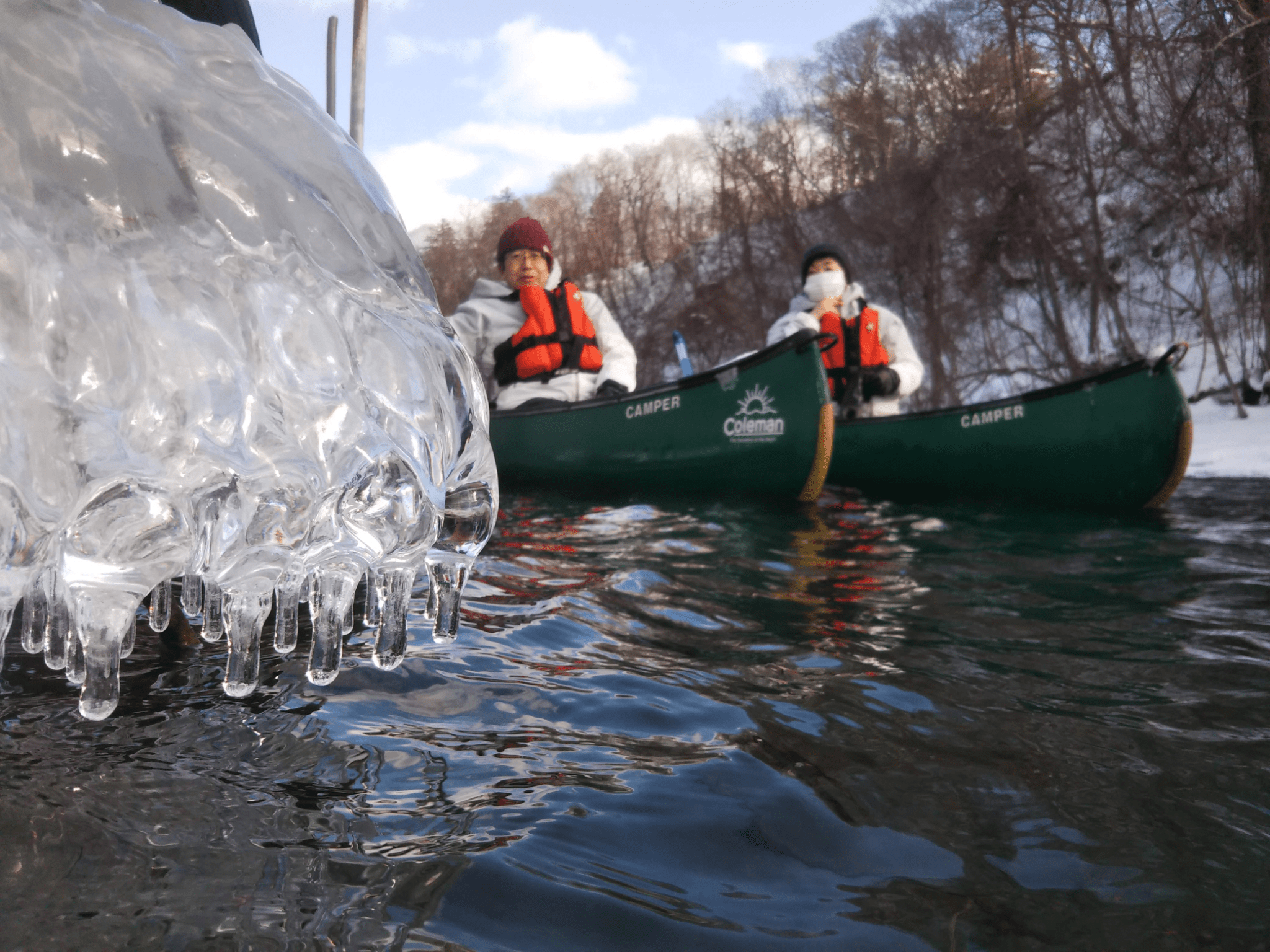 開催時期には、カヌーからしか見ることのできない川沿いの氷像もご覧いただけます。